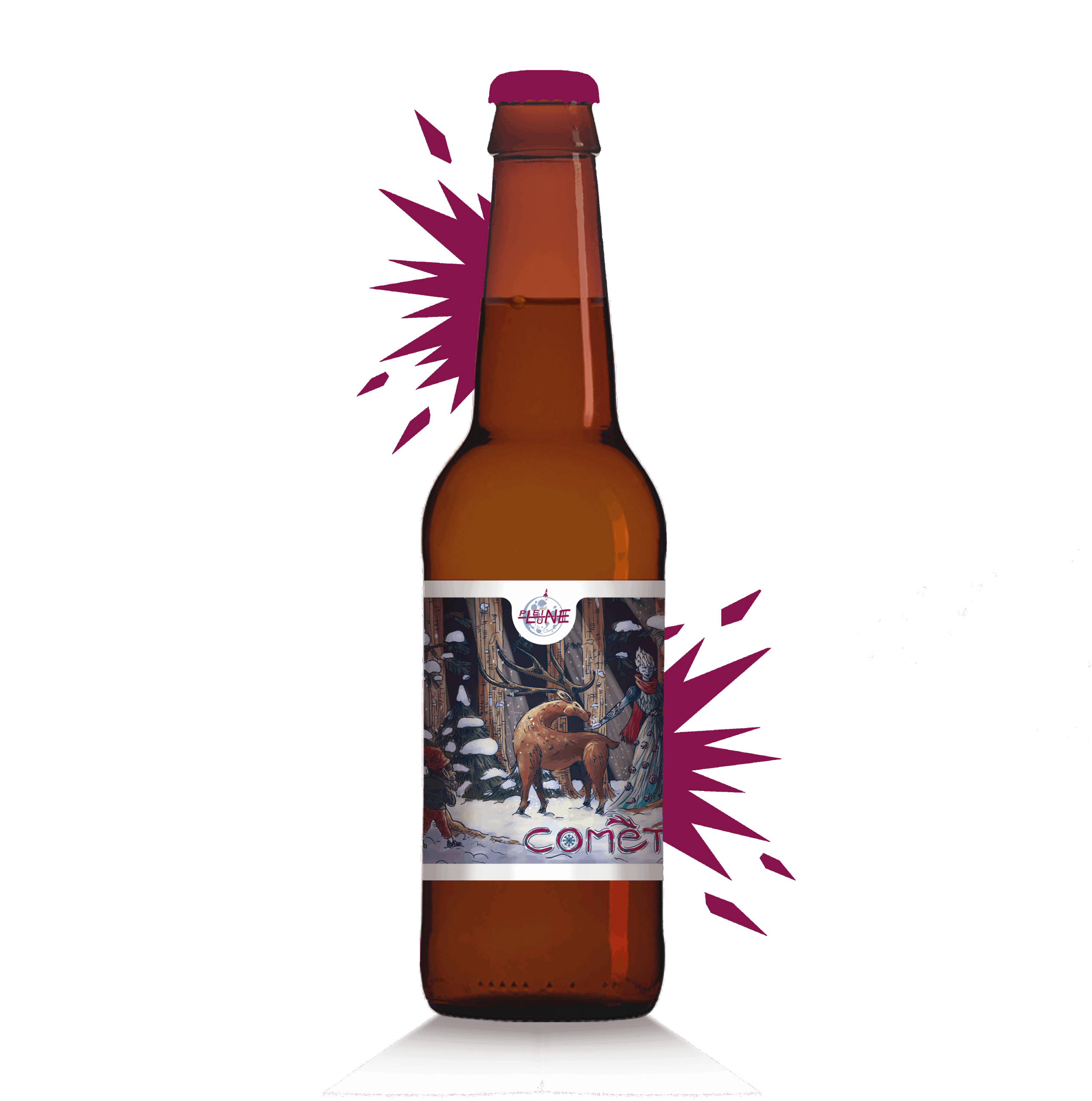 Comète l’élan, fatigué d’être exploité, s’est enfui de son emploi chez le Père Noël. Il a été recueilli par la Fée d’hiver, dont les fidèles lutins brasseurs ont élaboré pour lui ce breuvage réconfortant à base d’oranges fraîches et de graines de coriandre.